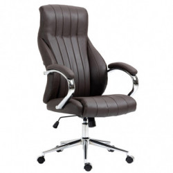 Dieser exklusive Bürostuhl überzeugt nicht nur mit seinem modernen Look, auch in Sachen Komfort kann ihm keiner etwas vormachen. Seine hochwertige Polsterung sorgt für ein angenehmes Sitzgefühl über mehrere Stunden hinweg. Für den Bezug des Sitzes und der Rückenlehne wurde hochwertiges Rindsleder verwendet. Die Rückenlehne hat eine angenehme S-Form und die Sitzhöhe ist stufenlos verstellbar und garantiert ein ergonomisches Sitzen. Des Weiteren ist der Schreibtischstuhl mit einem Wippmechanismus versehen, der für mehr Bewegungsfreiheit sorgt. Die Stabilität ist durch das Metallgestell in Chromoptik gewährleistet. Durch die fünf Leichtlaufrollen kann man leicht und locker über den Boden rollen – egal ob auf Hart- oder Teppichböden.