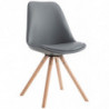 Dieser Stuhl verleiht jedem Raum einen exklusiven Look. Der komfortable Polsterstuhl besticht nicht nur durch hervorragende Sitzeigenschaften, sondern auch durch den spannenden Materialmix von Kunstleder und Holz. Die mit Kunstleder überzogene Sitzschale ist komplett gepolstert im Sitz- und Rückenbereich, sodass ein bequemes Sitzen auch über einen längeren Zeitraum kein Problem ist. Bei dem Gestell haben Sie die Qual der Wahl, als Beinform stehen rund oder eckig (square) zur Auswahl und als Gestellfarbe können Sie zwischen natura, cappuccino, weiß und grau wählen. Auf dem stabilen Vierfußgestell aus Buchenholz oder Eichenholz steht dieser Besucherstuhl bei jedem Anlass gut da.